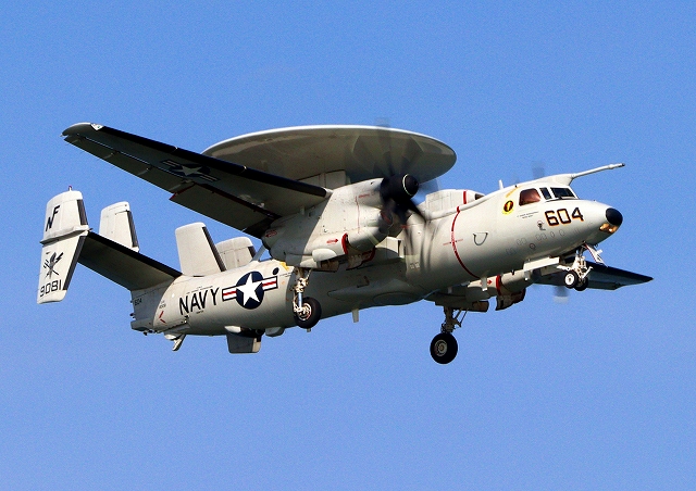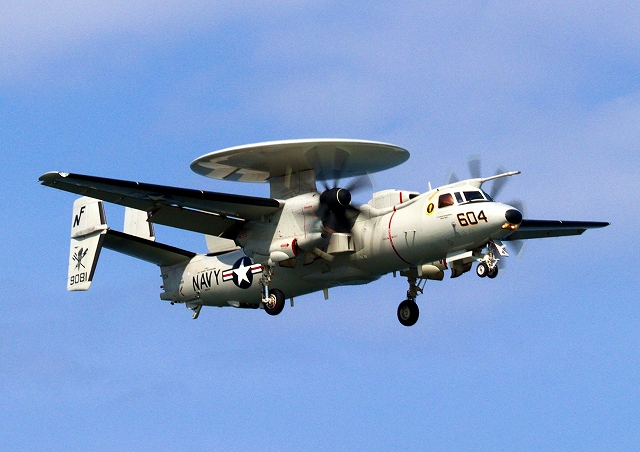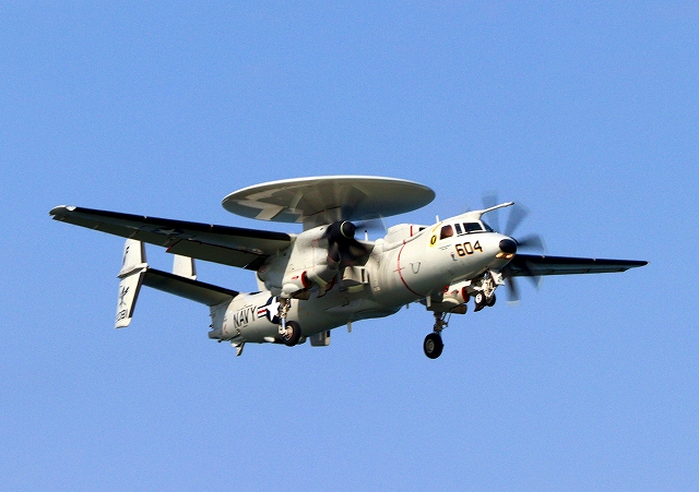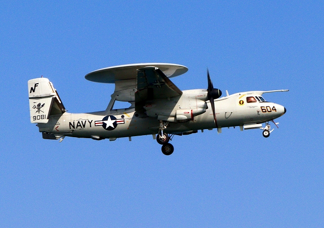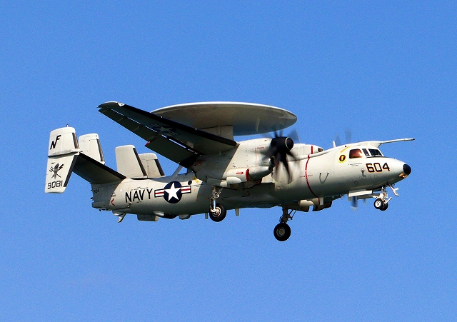 米海軍艦載機 E-2D アドヴァンスド・ホークアイ 早期警戒機(岩国基地)、604番機 |