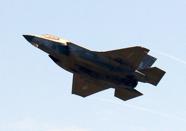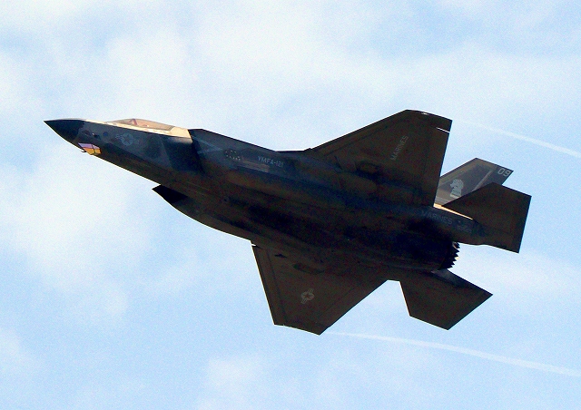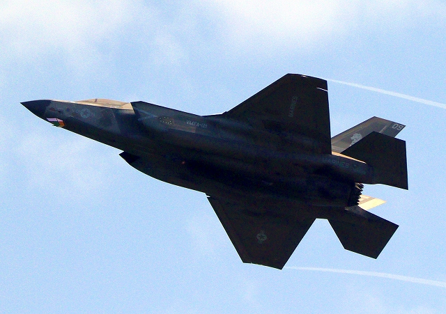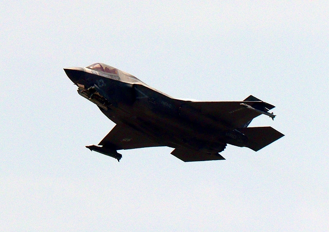 米海兵隊 F-35B ライトニングⅡ 戦闘機(岩国基地)、VK、05番機が離陸 |
