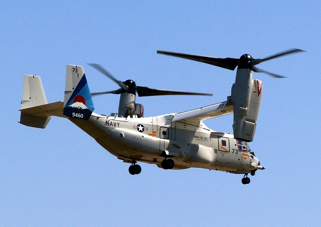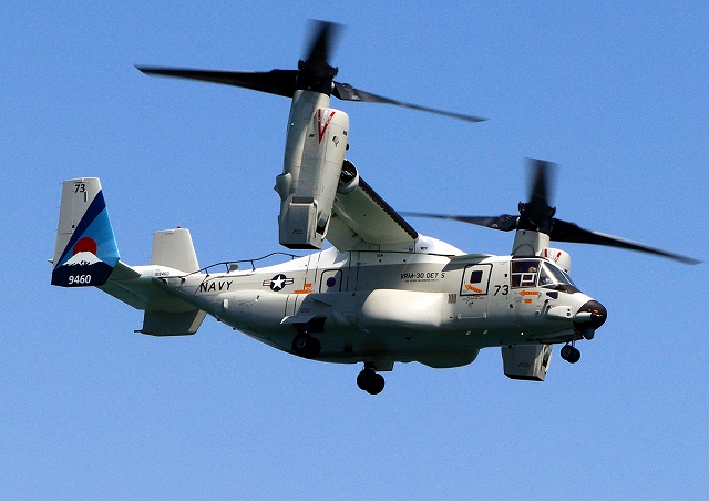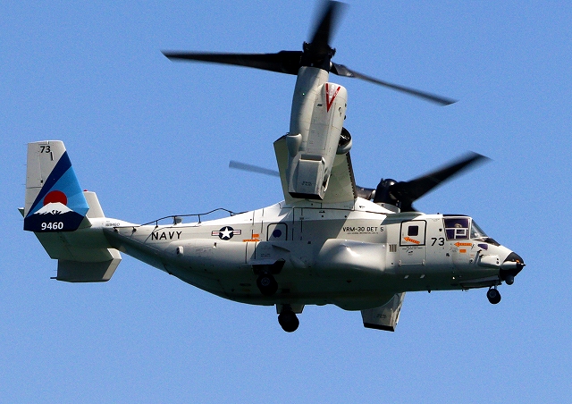 米海軍艦載機 CMV-22B オスプレイ(岩国基地)、73-9460番機が旋回(3周目) |