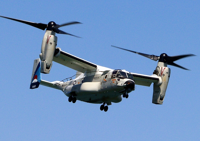 米海軍艦載機 CMV-22B オスプレイ(岩国基地)、73-9460番機が旋回(4周目) |