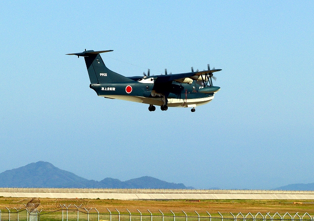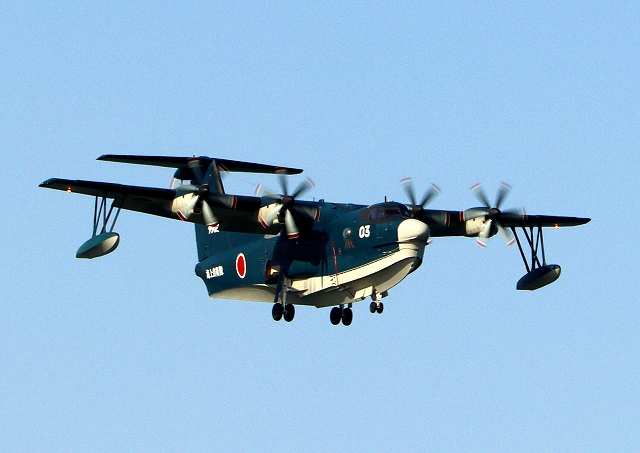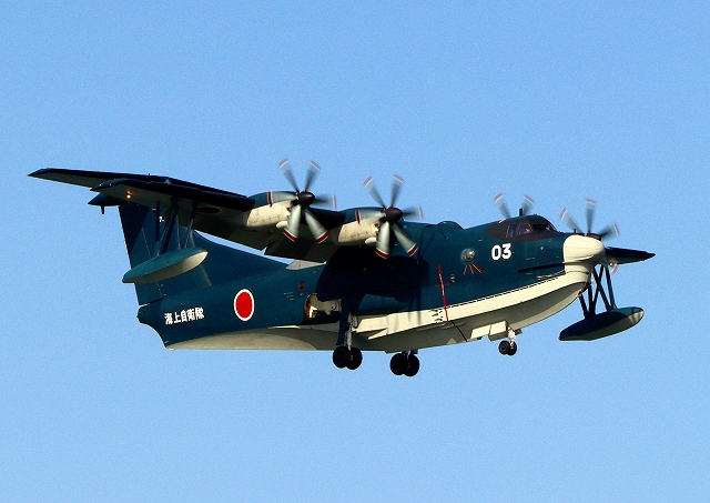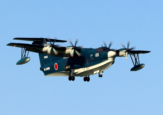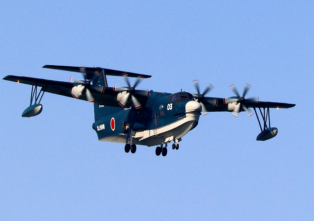 海上自衛隊 US-2 救難飛行艇(岩国基地)、9903番機が旋回 |