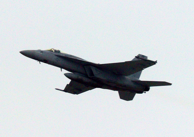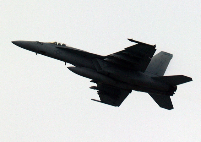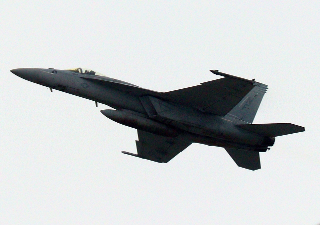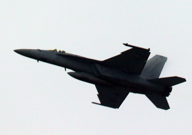 米海軍艦載機 F/A-18E スーパーホーネット 戦闘攻撃機(岩国基地)、NF、211番機が離陸 |