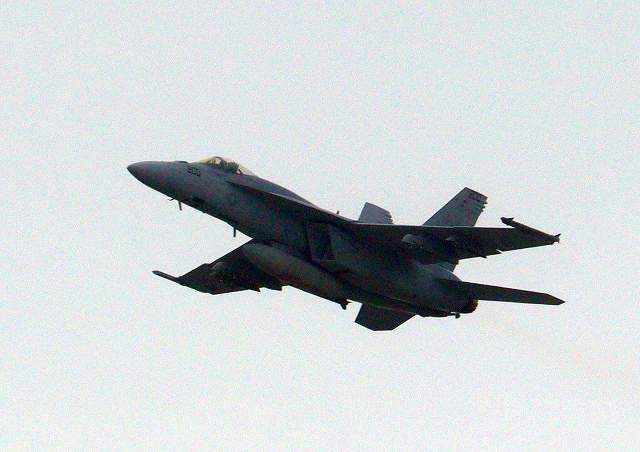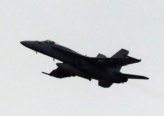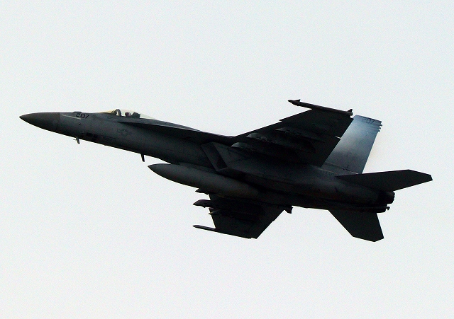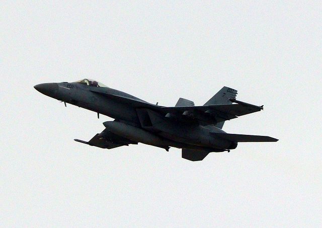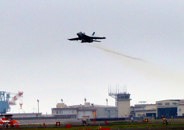 米海軍艦載機 F/A-18E スーパーホーネット 戦闘攻撃機(岩国基地)、NF、207番機が離陸 |