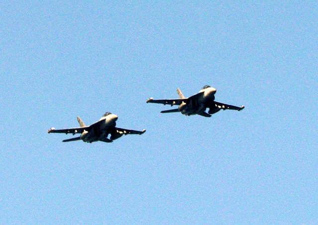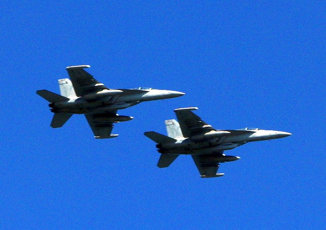 米海軍艦載機 EA-18G グラウラー 電子戦機戦闘攻撃機(岩国基地)、NF、503番機、504番機が2機編隊で帰還 |