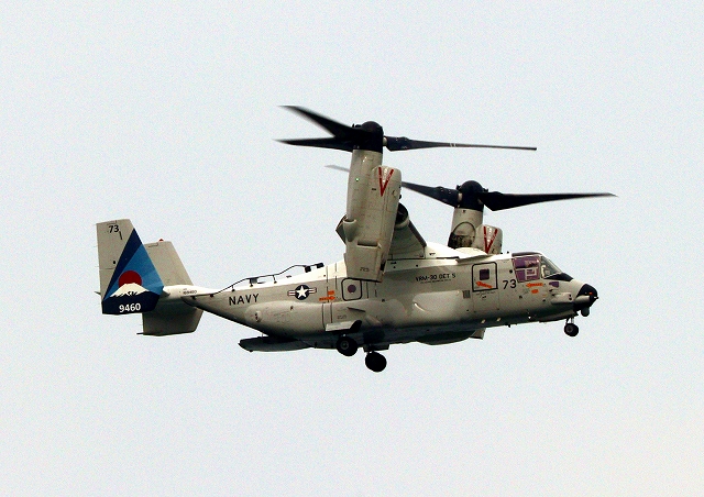 米海軍艦載機 CMV-22B オスプレイ(岩国基地)、73-9460番機が旋回 |