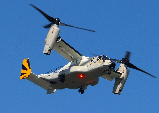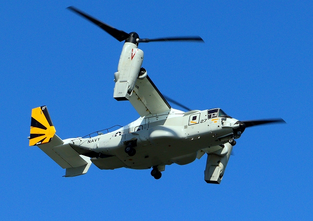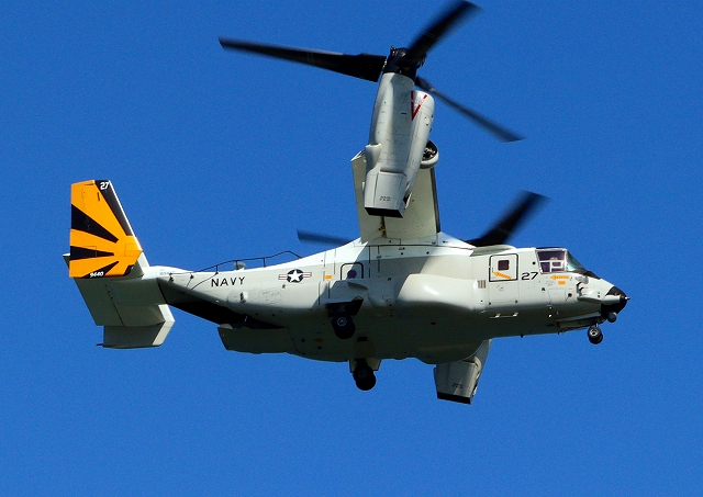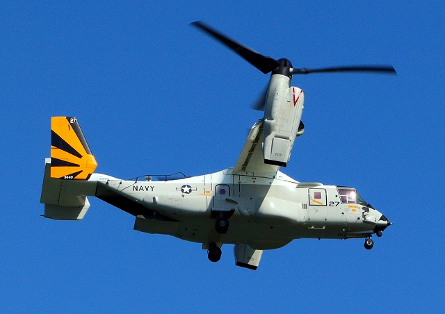 カールビンソン搭載機 米海軍艦載機 CMV-22B オスプレイ、27-9440番機が旋回 |