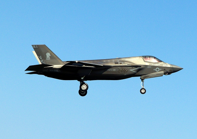 米海兵隊 F-35B ライトニングⅡ 戦闘機(岩国基地)、VK、12.1番機が着陸 |