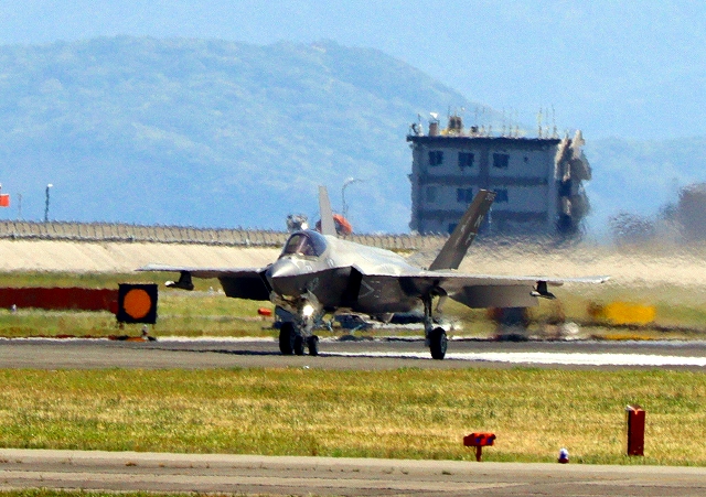 米海軍艦載機 F-35C ライトニングⅡ 戦闘機(岩国基地)、NF、304番機が着陸 |