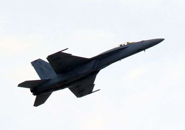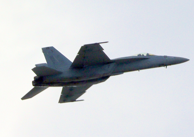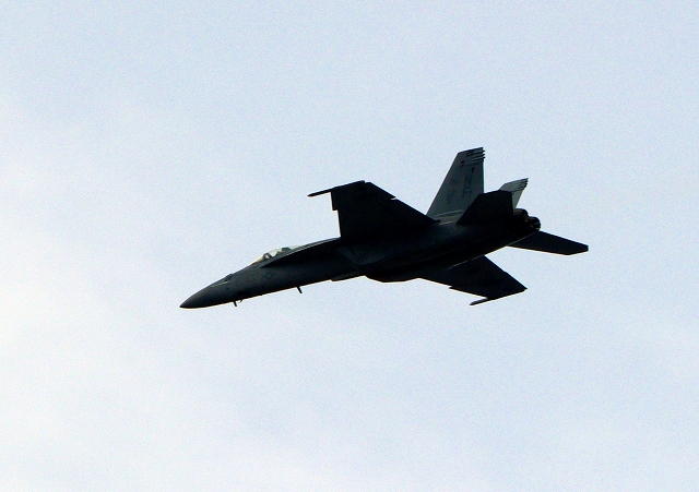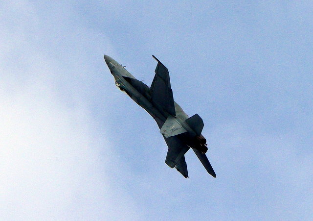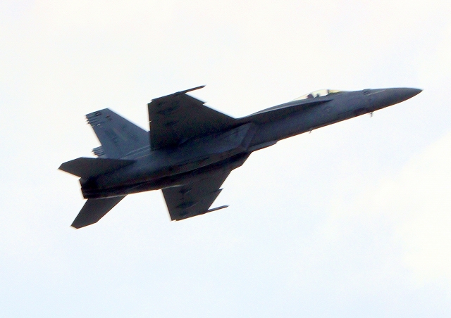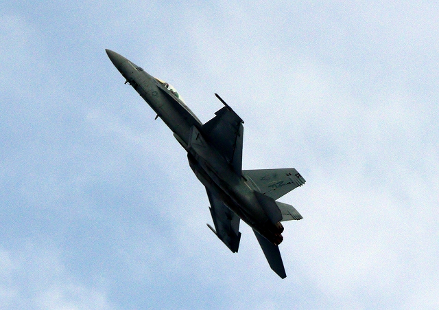 米海軍艦載機 F/A-18E スーパーホーネット 戦闘攻撃機(岩国基地)、NF、211番機がアクロバット飛行 |