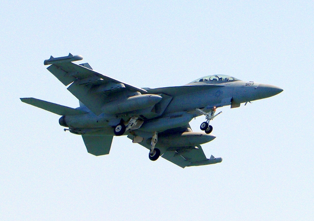 米海軍艦載機 EA-18G グラウラー 電子戦機戦闘攻撃機(岩国基地)、NF、515番機が着陸 |