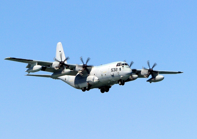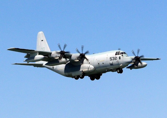 米海兵隊 KC-130J 空中給油機 スーパーハーキュリーズ(岩国基地)、QD 9532番機が帰還 |