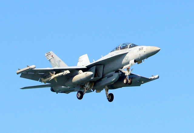 米海軍艦載機 EA-18G グラウラー 電子戦機戦闘攻撃機(岩国基地)、NF、503番機が帰還 |