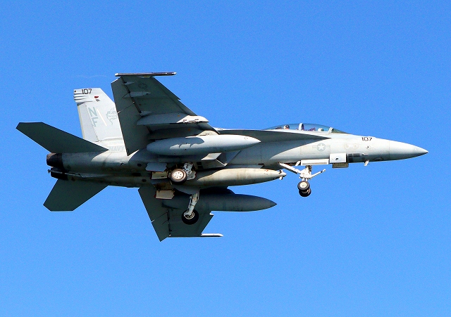 米海軍艦載機 F/A-18F スーパーホーネット 戦闘攻撃機(岩国基地)、NF、107番機 |