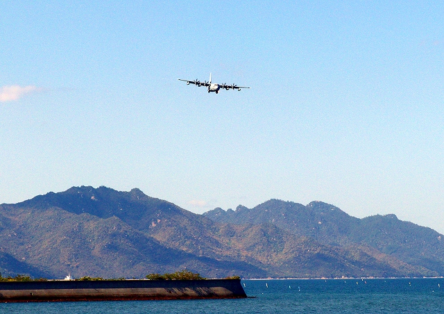 米海兵隊 KC-130J 空中給油機 スーパーハーキュリーズ(岩国基地)、QD 7983番機が着陸 |