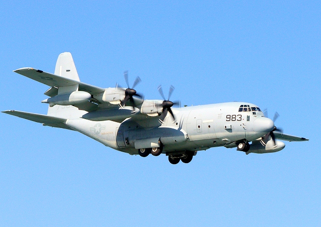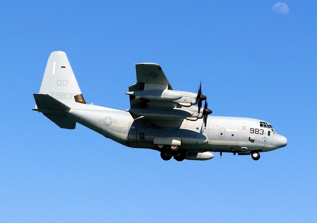 米海兵隊 KC-130J 空中給油機 スーパーハーキュリーズ(岩国基地)、QD 7983番機が帰還 |