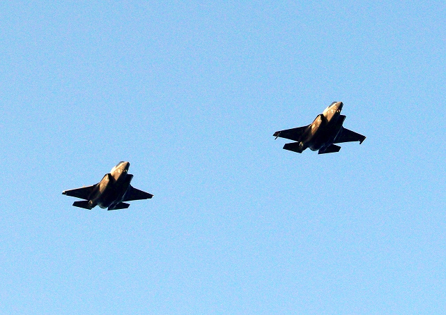 米海兵隊 F-35B ライトニングⅡ 戦闘機(岩国基地)、VK、09番機、11番機が2機編隊で帰還 |