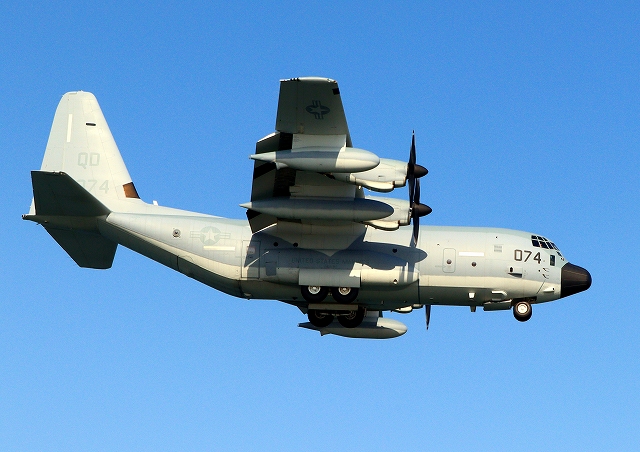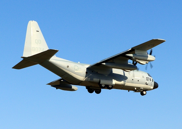 米海兵隊 KC-130J 空中給油機 スーパーハーキュリーズ(岩国基地)、QD 8074番機 |