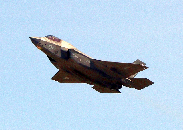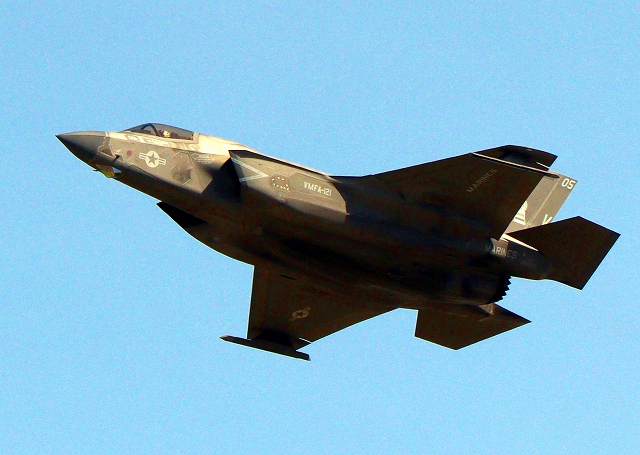 米海兵隊 F-35B ライトニングⅡ 戦闘機(岩国基地)、VK、05番機が離陸 |