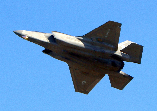 米海兵隊 F-35B ライトニングⅡ 戦闘機(岩国基地)、VK、11番機が離陸 |