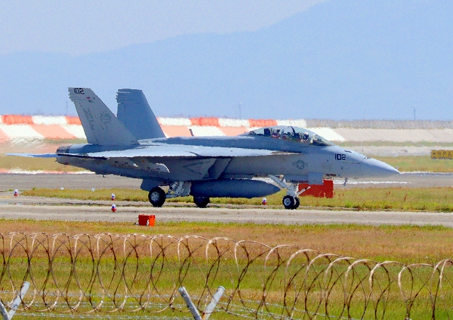 米海軍艦載機 F/A-18F スーパーホーネット 戦闘攻撃機(岩国基地)、NF、102番機 |