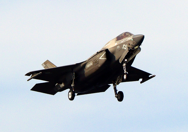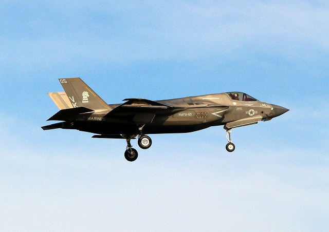 米海兵隊 F-35B ライトニングⅡ 戦闘機(岩国基地)、VK、05番機が着陸