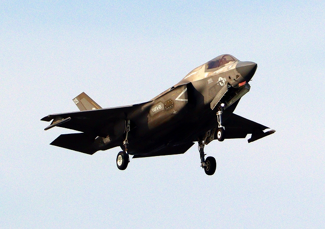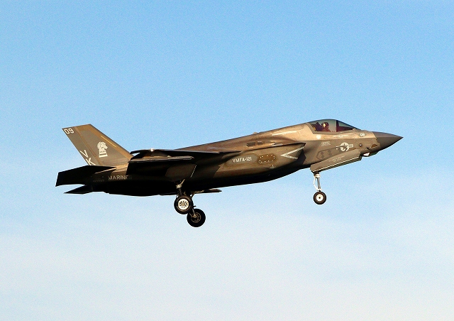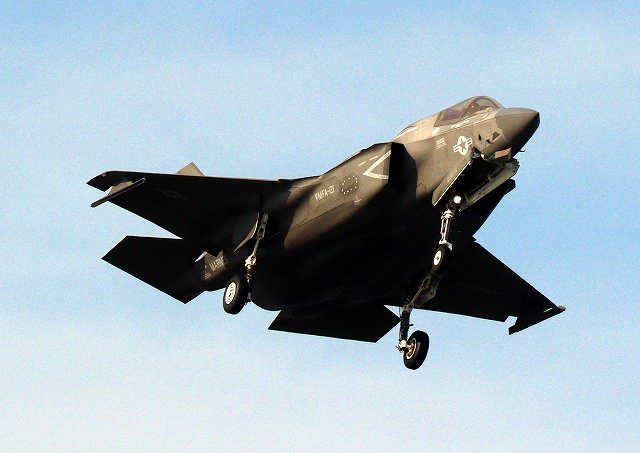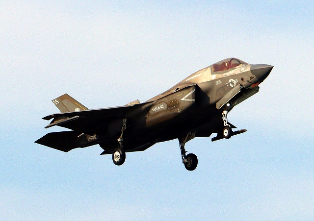 米海兵隊 F-35B ライトニングⅡ 戦闘機(岩国基地)、VK、11番機が着陸