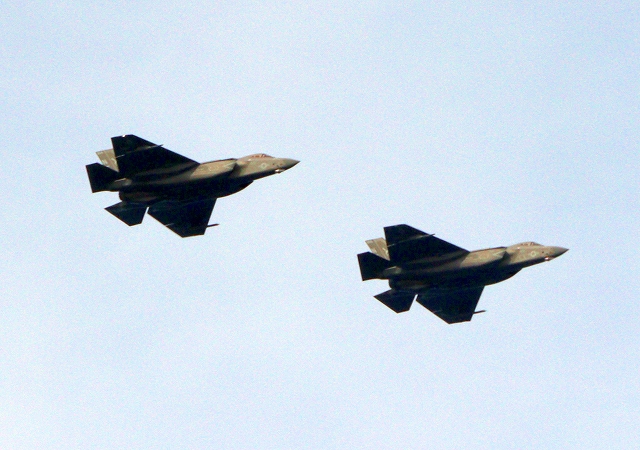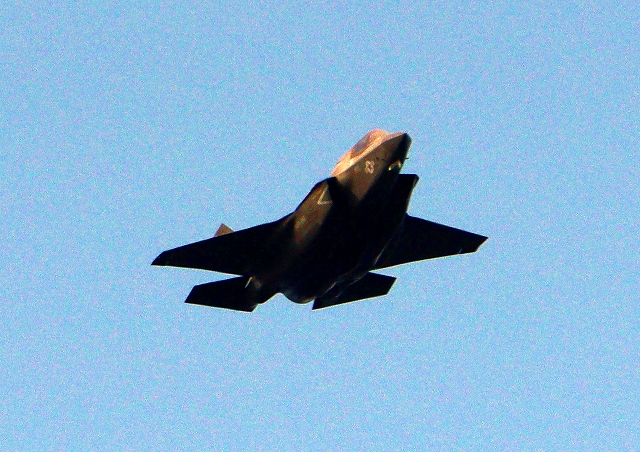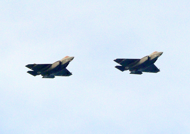 米海兵隊 F-35B ライトニングⅡ 戦闘機(岩国基地)、DT、26番機が帰還、旋回 |