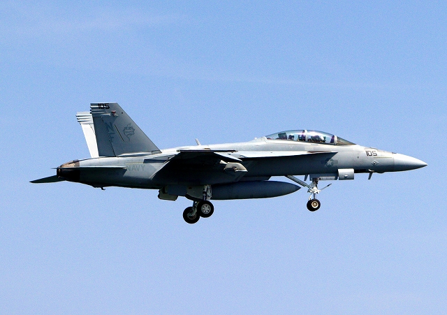 米海軍艦載機 F/A-18F スーパーホーネット 戦闘攻撃機(岩国基地)、NF、105番機 |