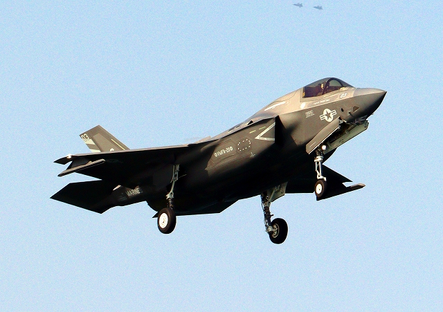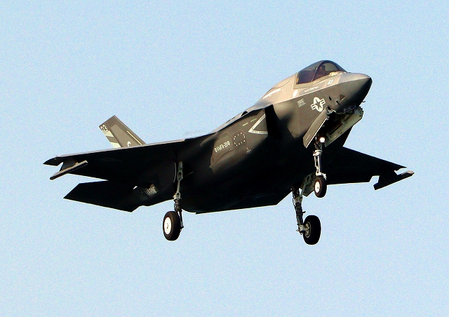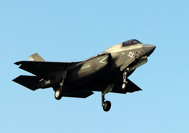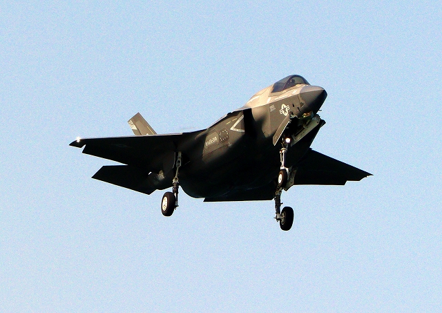 米海兵隊 F-35B ライトニングⅡ 戦闘機(岩国基地)、CF、03番機が着陸 14時33分に離陸した機。1時間29分の飛行でした。アップはしていませんが、写真は撮っていますので、判ります。 |