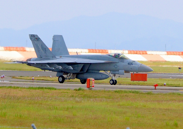 米海軍艦載機 F/A-18E スーパーホーネット 戦闘攻撃機(岩国基地)、NF 405番機 |