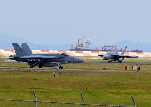 米海軍艦載機 F/A-18E スーパーホーネット 戦闘攻撃機(岩国基地)、NF 405番機、406番機 |