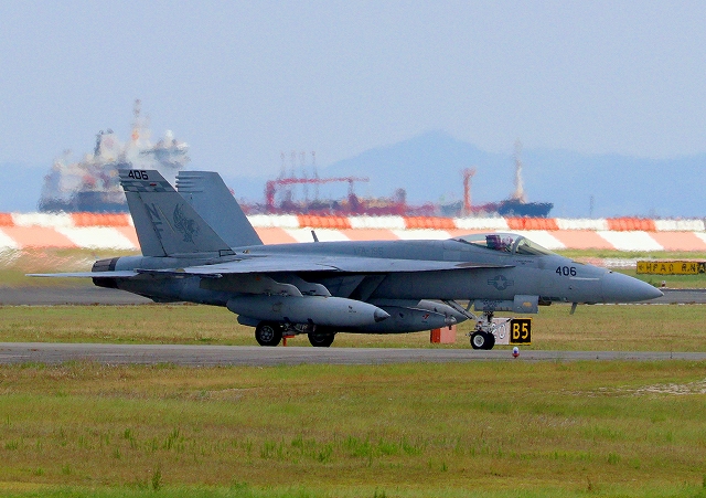 米海軍艦載機 F/A-18E スーパーホーネット 戦闘攻撃機(岩国基地)、NF 406番機 |