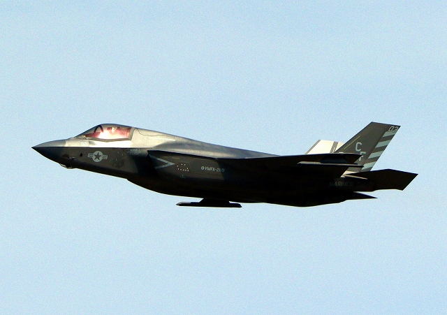 米海兵隊 F-35B ライトニングⅡ 戦闘機(岩国基地)、CF、03番機が離陸 |