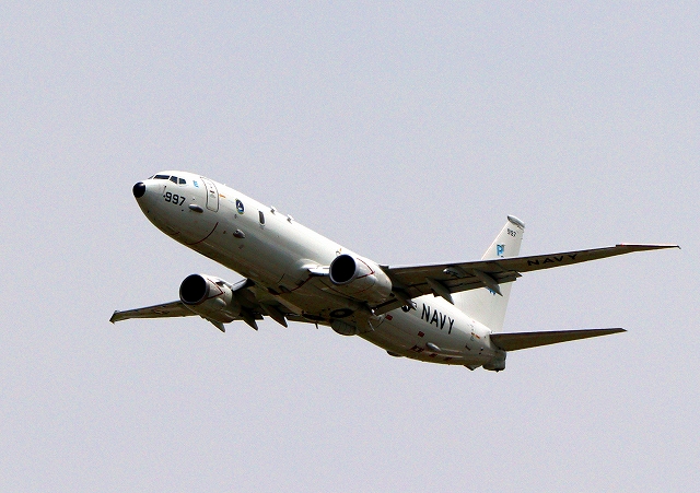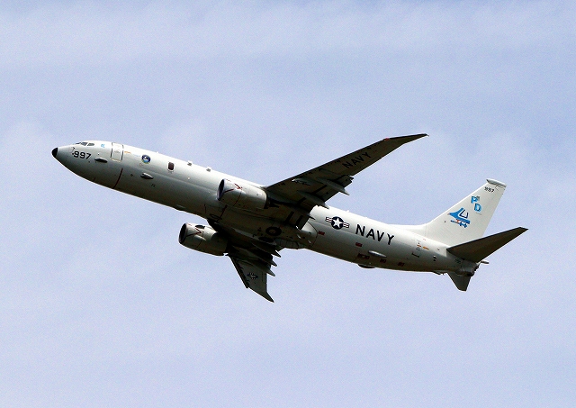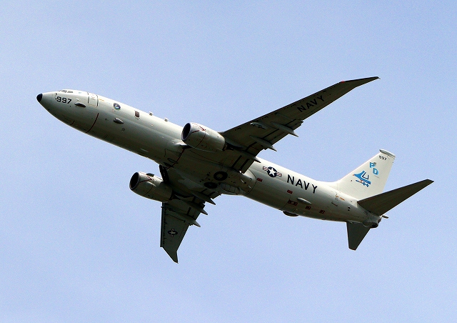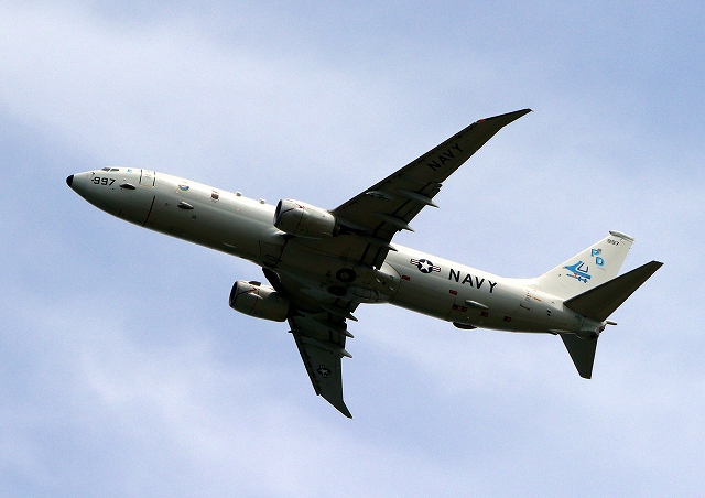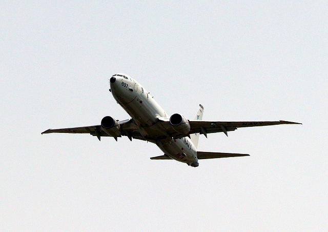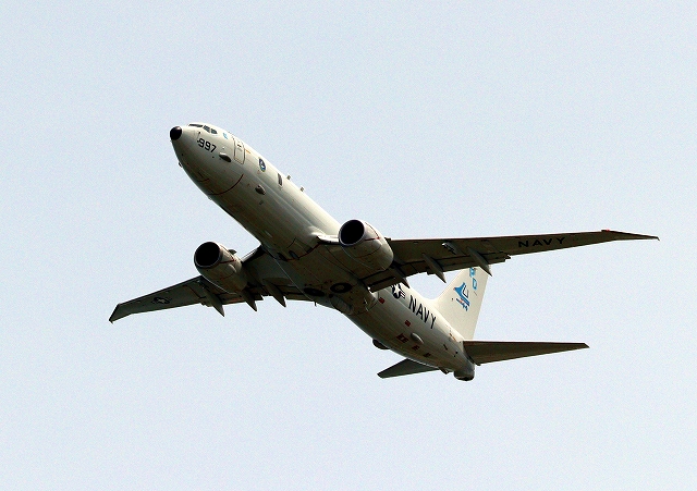 米海軍 P-8A 海上哨戒機 ポセイドン(嘉手納基地、三沢基地)、PD、997番機が旋回(5周目) |