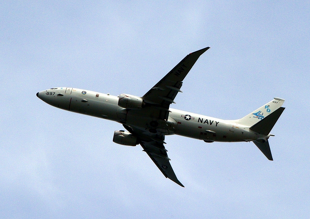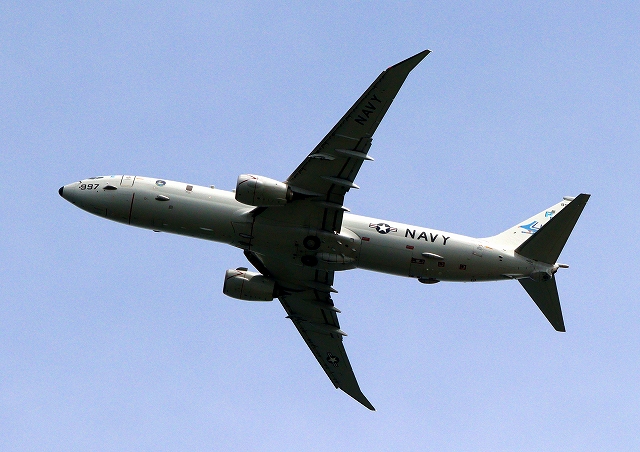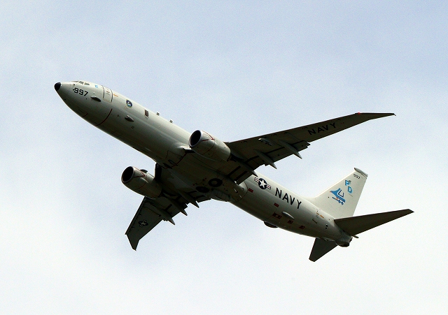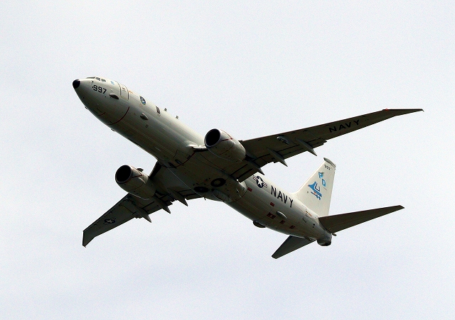 米海軍 P-8A 海上哨戒機 ポセイドン(嘉手納基地、三沢基地)、PD、997番機が旋回(7周目) |