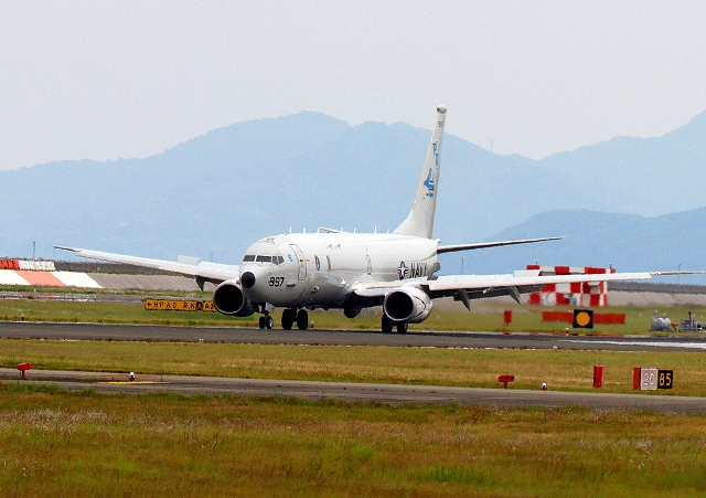 米海軍 P-8A 海上哨戒機 ポセイドン(嘉手納基地、三沢基地)、PD、997番機が着陸 |