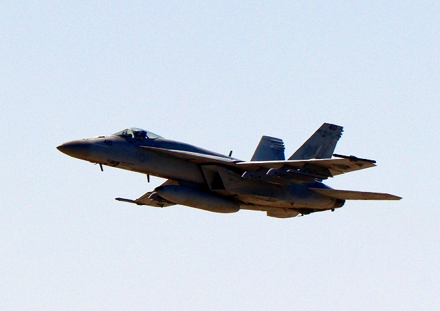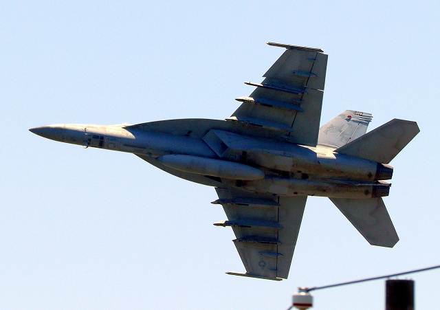 米海軍艦載機 F/A-18E スーパーホーネット 戦闘攻撃機(岩国基地)、NF、410番機が、硫黄島、FCLPに向けて?離陸 |