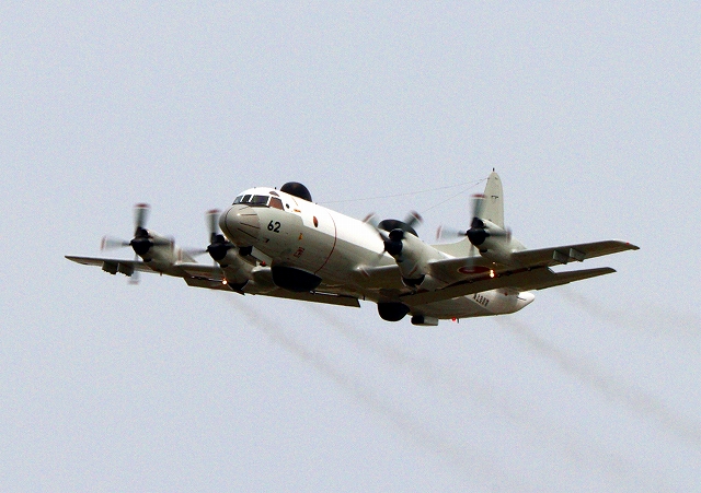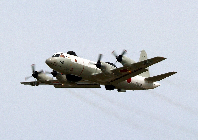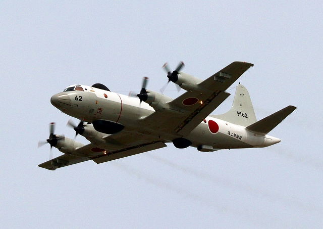 海上自衛隊 UP-3D 電子戦訓練支援機(岩国基地)、9162番機が旋回 |