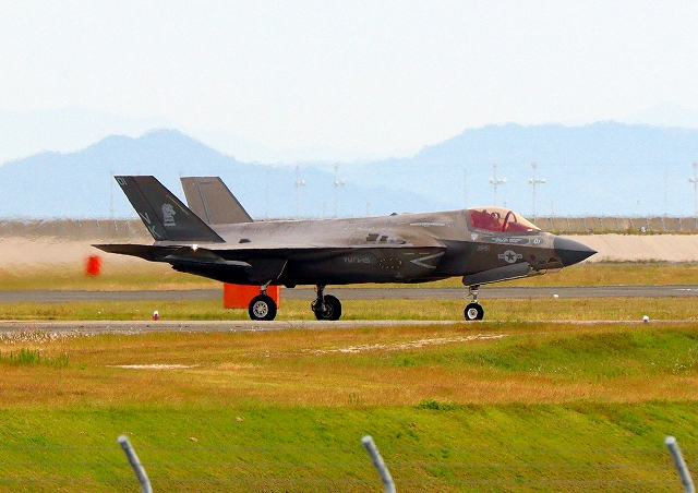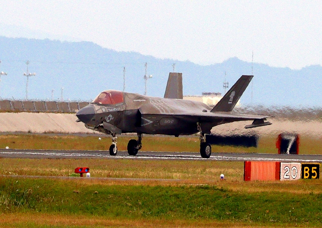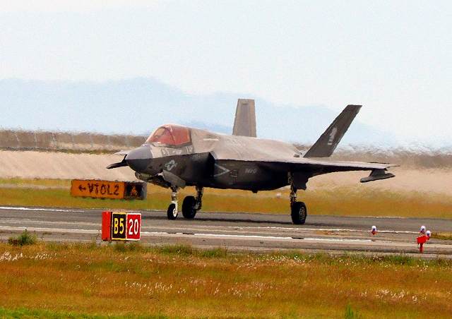 米海兵隊 F-35B ライトニングⅡ ステルス戦闘機(岩国基地)、VK、01番機が着陸