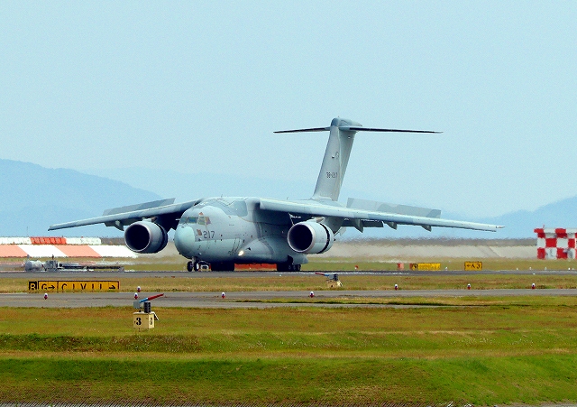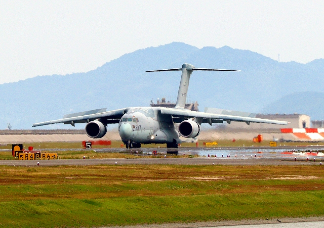 航空自衛隊 C-2 輸送機(美保基地)、38-1217番機が降りてきました。 |