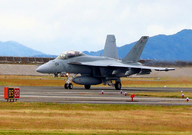 米海軍艦載機 F/A-18F スーパーホーネット 戦闘攻撃機(岩国基地)、NF、104番機 |
