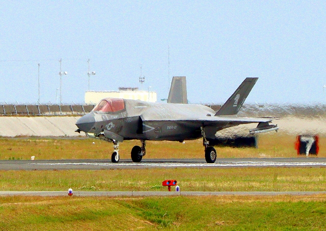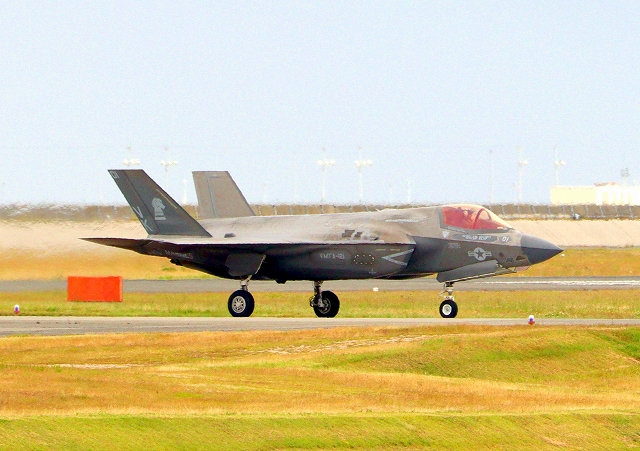 米海兵隊 F-35B ライトニングⅡ ステルス戦闘機(岩国基地)、VK、11番機が着陸 |