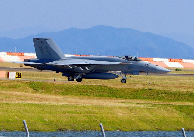 米海軍艦載機 F/A-18E スーパーホーネット 戦闘攻撃機(岩国基地)、NF、201番機 |