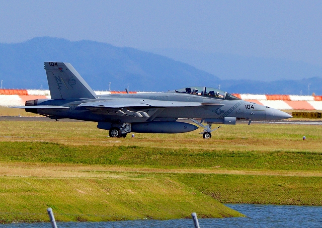 米海軍艦載機 F/A-18F スーパーホーネット 戦闘攻撃機(岩国基地)、NF、104番機 |