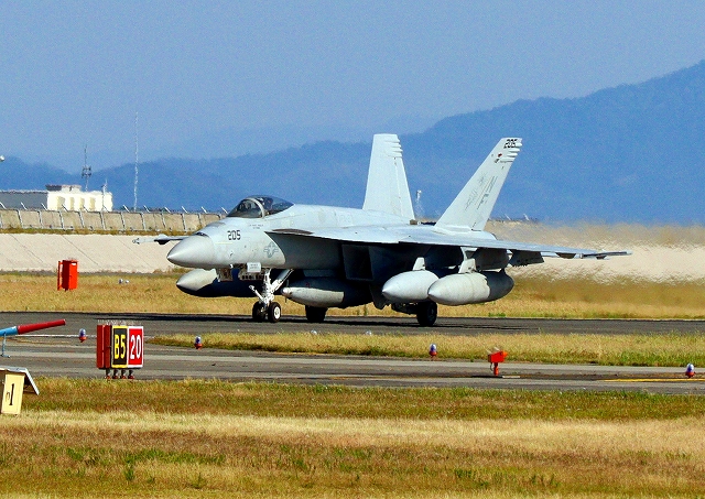 米海軍艦載機 F/A-18E スーパーホーネット 戦闘攻撃機(岩国基地)、NF、205番機 |