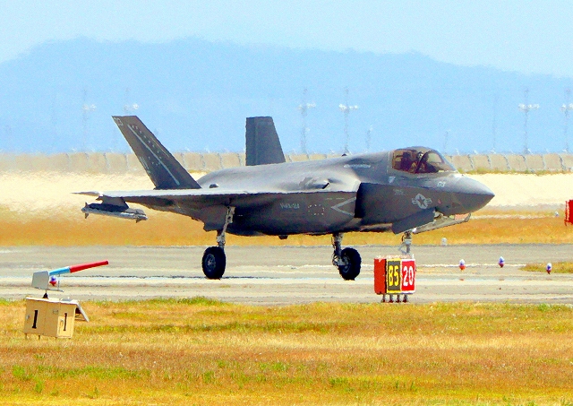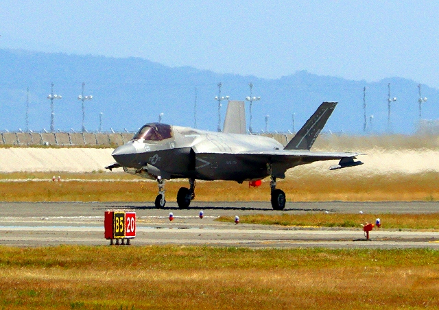 米海兵隊 F-35B ライトニングⅡ ステルス戦闘機(岩国基地)、WE、03番機が着陸 |