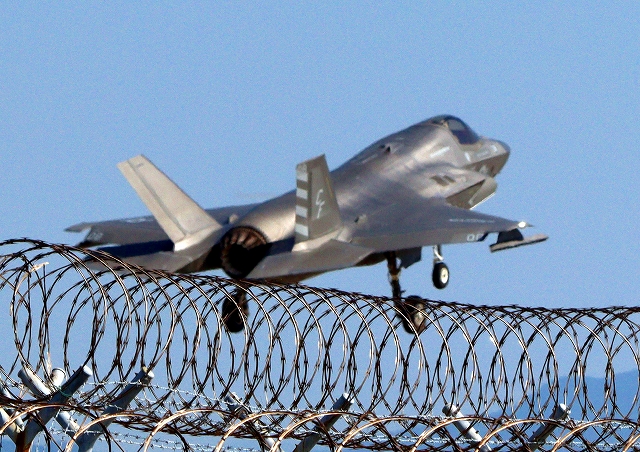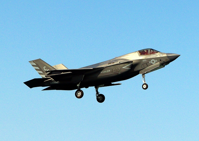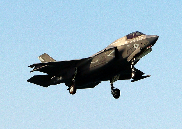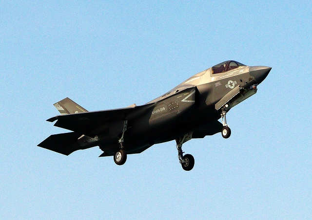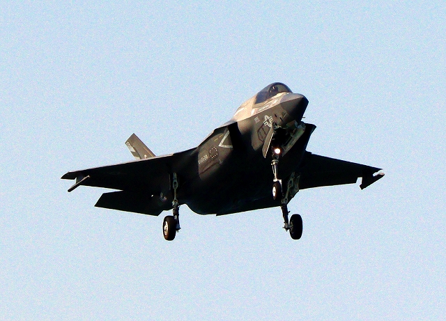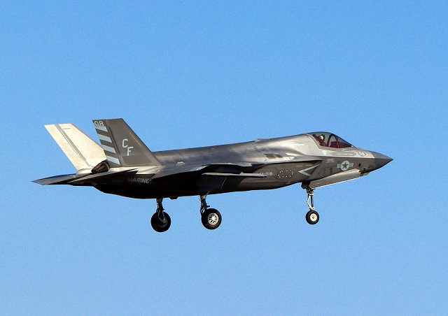 米海兵隊 F-35B ライトニングⅡ ステルス戦闘機(岩国基地)、CF、08番機が着陸 |