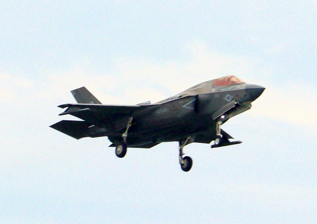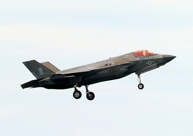 米海兵隊 F-35B ライトニングⅡ ステルス戦闘機(岩国基地)、VK、01番機が着陸 |