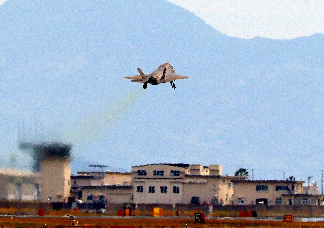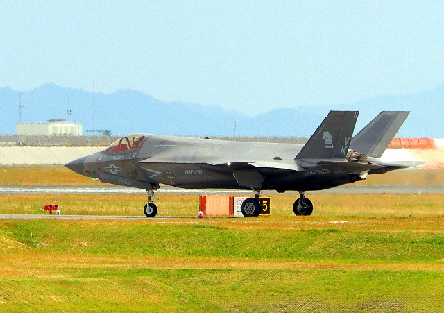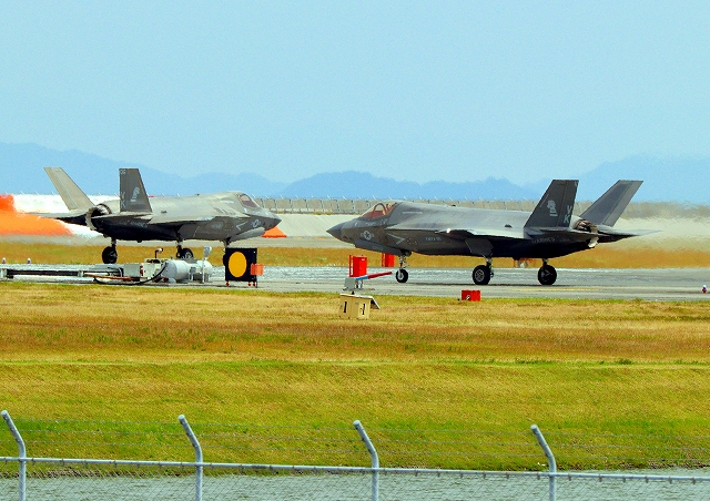 米海兵隊 F-35B ライトニングⅡ ステルス戦闘機(岩国基地)、VK、11番機が離陸 |