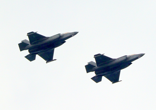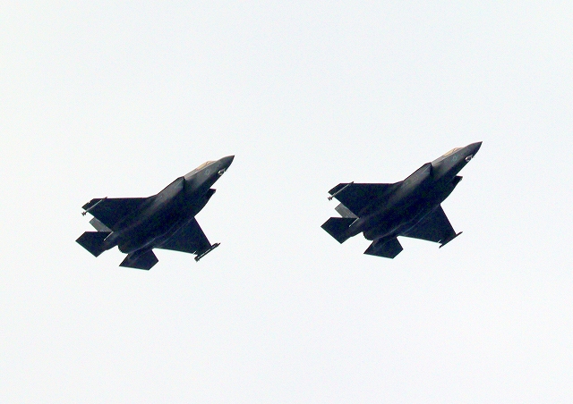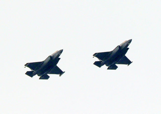 米海兵隊 F-35B ライトニングⅡ ステルス戦闘機(岩国基地)、WE、05番機、00番機が2機編隊で帰還 |